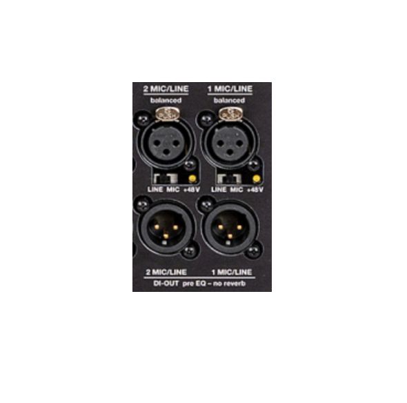 Jaaz Acoustics type 6i amplifiers are equipped for such situations with instrument inputs for electromagnetic or piezoelectric pickups with a preamplifier and simultaneously with microphone inputs, which are also suitable for condenser microphones with P48 phantom power. Both types of inputs are phase-aligned, so if instrument piezo or electromagnetic inputs are connected to inputs No. 3 or 4, additional microphones can be connected, including P48 power, to inputs 1 or 2. Both signals can be easily mixed according to the artist's requirements using the volume 1, 2, 3, or 4 controls.